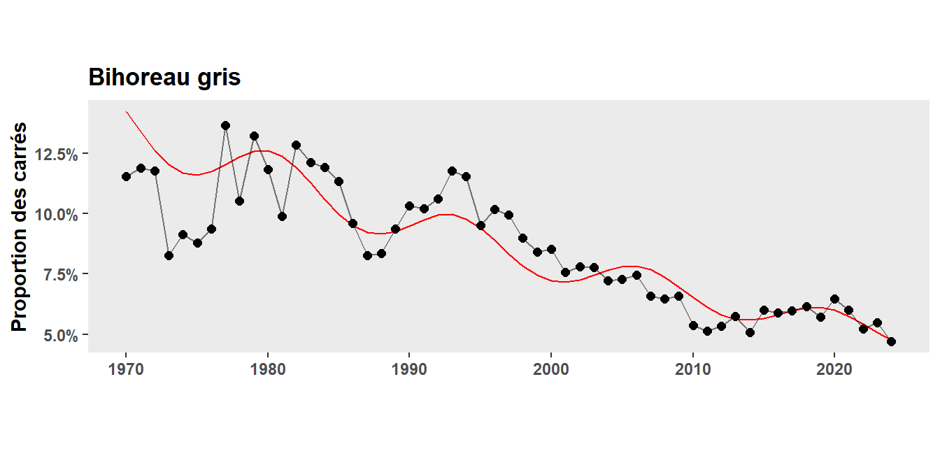 Cela fait un bout depuis mon dernier post! Mais non, je n’ai pas abandonné… Après avoir fait mijoter de nombreux projets, me voilà prêt à revenir auprès de vous pour partager des idées, des résultats. Aujourd’hui je vous invite à explorer les tendances de populations des oiseaux du Québec, 1970-2024.