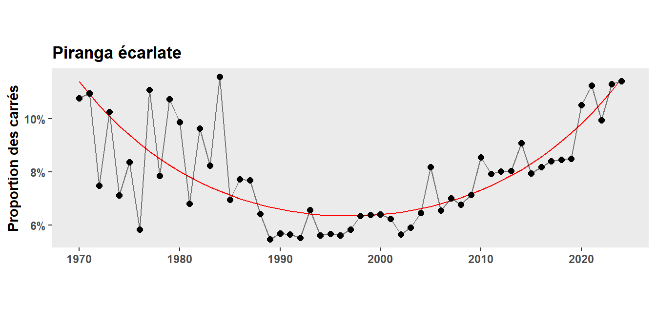 D’autres cas me font sourciller, comme le Piranga écarlate. Cette espèce aurait-elle un cycle de 50 ans ? On le saura peut-être en 2100…